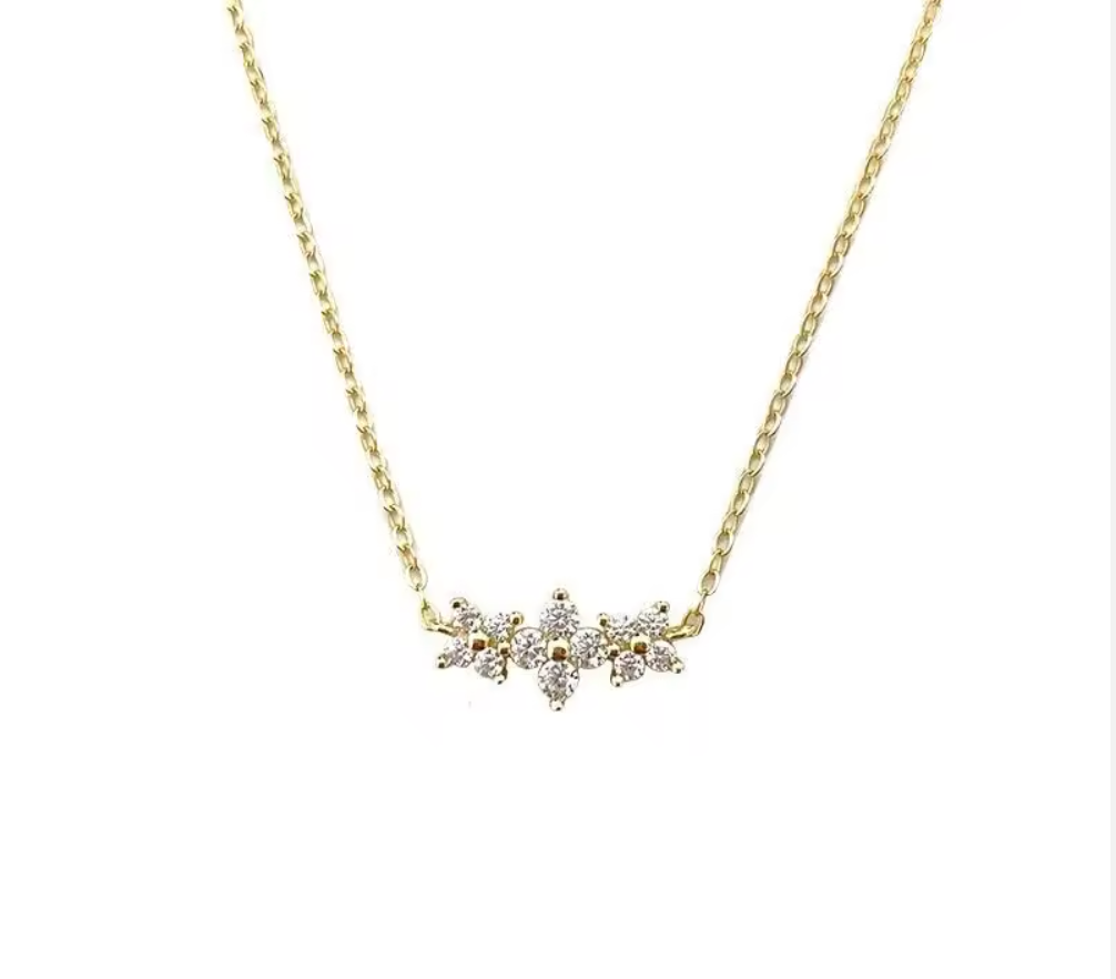 The ELORÉ BAR necklace is designed for girls who love a dainty, minimal look with a little extra shine. Each cluster is crafted with premium CZ stones, creating a seamless flow of sparkle that looks elegant on its own or layered.